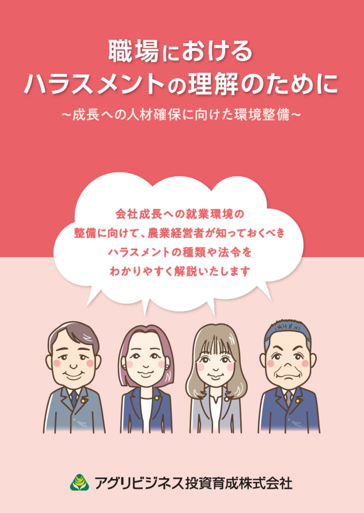 農業経営の現場においては、まだまだハラスメント対策に関する基本的な情報が行き渡っていない印象を受けます。このたび執筆の機会を頂戴した農業経営者向けのハラスメント対策のブックレットがハラスメントについての理解を深め、効果的な対策を講じる一助となることを願っております。